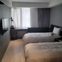 L'emplacement est bon et pratique pour le MRT. Si vous transportez des bagages, il est recommandé de prendre la sortie de la gare de Shin Kong (avec ascenseur). Les amis qui voyagent léger peuvent également choisir la sortie 4 du MRT de l'hôpital universitaire national de Taiwan, plus proche. Ce séjour a été une bénédiction. La chambre est équipée d'une petite baignoire. Mon enfant était très heureux de prendre un bain après avoir marché toute la journée. J’espère que des chaussons en papier de taille enfant pourront être fournis à l’avenir. Je reviendrai si j'en ai l'occasion.