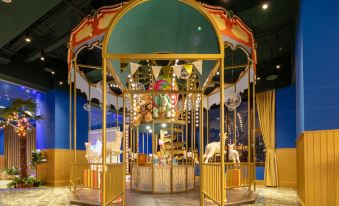 The amusement park in Taipei city center includes carnival-like scenes. We enjoy the transparent house and fun all around together.