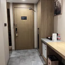 La chambre était assez grande, bien équipée et propre. Le personnel était attentionné et serviable. Les espaces communs étaient spacieux et fonctionnels, avec notamment une salle de sport, une salle de lecture et une buanderie, très agréables. Nous avons également reçu des autocollants représentant les créations de la Suzhou Super League. Lors de la réservation, nous avions utilisé nos points pour le petit-déjeuner, mais nous ne l'avons pas testé. Nous avons opté pour un thé au Fengde Garden, je ne peux donc pas me prononcer sur le petit-déjeuner de l'hôtel. L'hôtel est idéalement situé, non loin du parc du lac Fengcheng. Un parking est disponible à l'entrée et un arrêt de bus à proximité facilite les déplacements.