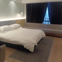 L'environnement n'est pas mal. Il y a un parking à l'arrière, ce qui est très pratique, c'est dommage de ne pas être allé au petit-déjeuner buffet après avoir réservé une chambre ! Je dois me lever tôt la prochaine fois pour y aller ! Les plats à emporter sont livrés par des robots, ce qui est très avancé. Le lit est très confortable et moelleux.