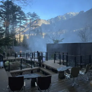 Just had an amazing time in this ryokan with a friend. The public bathroom in the open air - incredible, big, and also a lot of steam, along with the lighting of the lanterns, gives an incredible onsen-vibe! (But it was closed for cleaning at midnight, and not at one in the morning, as written in the brochure). There is also a sauna with a cold bath. After onsen, you can drink milk for free or eat ice cream from frozen juice. There is a separate paid lounge with unlimited beer, wine and whiskey. Private bathrooms are not bad, but not like public ones, plus they were constantly occupied by couples. The bath in the room itself is also not bad, but if you are tall, there may be problems with where to put your feet x) Dinner and breakfast were amazingly tasty. I especially liked the space on the street by the fire, where you can fry marshmallows or just sit after onsen to cool off with a strong drink) During the day we ride to Kamikochi, also a fantastic place)