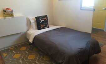 The house has a large front yard on a quiet street, so plenty of space for on street parking, and once you reserve and send the agreement back, you will receive a door code, that will let you in and out at your convenience, 24/7. Upon booking you will be required to sign and return the rental agreement/ contract prior to door code being sent.