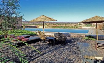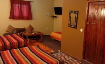 Sur le chemin de notre road trip au Maroc, après Marrakech et Agadir, nous avons choisi de passer une nuit dans cet hôtel. Première surprise, un site en bord de route mais au calme avec une vue epoustouflante, passé l'enceinte de l'entrée, découverte du site qui fait hôtel avec ses 6 ou 8 chambres et sa partie camping et restaurant. Accueilli par Pascal le propriétaire français, nous avons découvert ce bel endroit cosy avec son petit parc de jeu pour enfant, sa belle piscine vue sur les montagnes. Nous avions une réservation pour 4 personnes, nous avons eu la chambre "marron". Belle surprise également, très belle pièce, tv et clim. 2 grand lits double, 1 lit simple et un grand canapé, une salle de bain simple mais qui fait le boulot. ***Nous avons malheureusement eu un problème avec la literie, 1er lit double matelas trop trop ferme, comme une planche de bois et le 2em lit double : 2 pieds cassés et barre du sommier pliée, donc matelas qui faisait un V. Le ménage de la chambre était superficiel malheureusement 😪😪. *** Nous avions de l'eau très chaude ( ce qui nous changea de notre précédent hôtel à Agadir). *** Nous avons réservé une table pour le dîner, ce fut une surprise de taille!!!!! Un repas magnifiquement bon, copieux. Les enfants avaient des vraies frites faites maison! Le repas un délice et un prix plus que correct! Cuisine très très bonne, merci et bravo aux cuisinières. ***Piscine très grande, eau un peu trouble mais très bien aménagée ! 💥💥💥Pascal et Naima nous ont accueillis dans leur établissement et ce fut une belle expérience. 💥💥💥 Prix très correct, chambre très spacieuse et repas du soir et petit déjeuner excellent! A NOTER : Avec juste un petit changement de literie, et un coup de balai plus approfondi, cet établissement serait au top. Nous y reviendrons avec plaisir! Merci pour ce bel accueil.