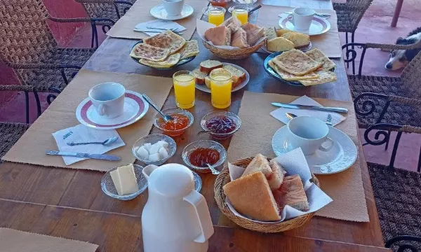 Onderweg naar Ouarzazate hebben we hier in de middag gegeten. De Curry, Berberpizza en Jus'd orange waren echt heerlijk. Het was heel rustig, je krijgt op het terras niks mee van wat er buiten de muren gebeurd. De bediening was heel aardig, kon ons goed helpen in de keuze.
