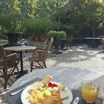 Great experience in this cozy and wonderful hotel. We liked everything starting from interesting building of the hotel itself, spacious room and very helpful and friendly staff. Good breakfast with live piano music or on the sunny terrace.
