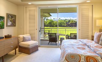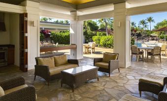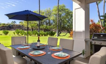 The outdoor Lanai is equipped with a BBQ, sink, and lots of seating space with views of the lusciously green fairway. Listen to the friendly morning chirp of the unique Island bird species while watching the sun rise over the horizon.