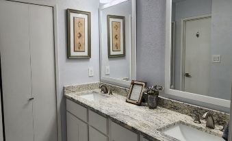 Nestled in The Colony, this charming house features 2 cozy bedrooms with queen beds, 2 bathrooms equipped with all the essentials, living room sofa unfolds to allow an additional queen bed sleeping space. The backyard has a nice concrete patio with doors from both the primary bedroom and dining area, and 2 fenced parking spots at rear of property.
