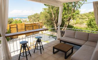This house is full of stories and information. Back in the days, it served as a shelter where the farmers were resting after harvesting the fields. Today, it has been transformed into a modern boutique retreat that preserves its authentic character and embraces its imperfections. This ultra-bright house is ideal for families, couples, groups of friends and individuals traveling alone for business or for pleasure. As a corner lot house benefits from its position by creating a pleasant feeling of airiness and simplicity. The wooden fence is surrounded by lush greenery and trees which offer privacy and tranquility. From the freedom of wide open spaces to the glittering of big city lights, the extra large terrace is filled with breathtaking panoramas just waiting to be enjoyed. The Grand Seaview Retreat is equipped with two bathrooms -one inside the house and one detached, at the lounge area- new, energy efficient installations, air conditioning and heating. We also provide to our guests two private parking spaces: one inside the premises and one outside at no additional cost and, of course, fresh linen and towels. Apart from the amenities listed, it is also equipped with a smart tv so our guests can easily cast movies, games and music to the big screen.About pets:Pets allowed: limit 2 total.Pes are only allowed in the fenced-in yard.About checkOut:Check out before 11:00 AM.About children:Children allowed: ages 0-17.About customRules:“Quiet hours” in summer are between 11 p.m. to 7 a.m. and 3 to 5.30 p.m and in winter between 10 p.m. and 7.30 a.m. and from 3.30 to 5.30 p.m.About checkIn:Check in after 4:00 PM.About smoking:Smoking is not permitted.About minBookingAge:Minimum age to rent: 18.About events:No events allowed.