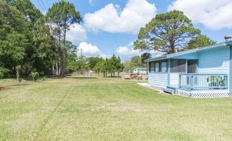 Cozy 2 bedroom 2 bathroom cottage on .75 acres. House is supplied by well water which also waters all of the fruit trees. The herb garden enhance this fully furnished home. 65" tv can be seen from all areas of the home. Washer/dryer and supplies are available to all guests. 800 square feet but feels so much bigger with the open floor plan. Enjoy the privacy of the huge yard for roasting s'mores over the firepit. Sip on warm coffee on the screened porch overlooking the lush backyard. Tucked away from the main road but minutes from shopping, beaches, and Kennedy Space Center Visitors Center. About pets:Pets allowed: limit 3 total.Lots of outdoor space for the dogs to run..About checkOut:Check out before 11:00 AM.About children:Children allowed: ages 0-17.About checkIn:Check in after 3:00 PM.About smoking:Smoking is not permitted.About minBookingAge:Minimum age to rent: 25.About events:No events allowed.
