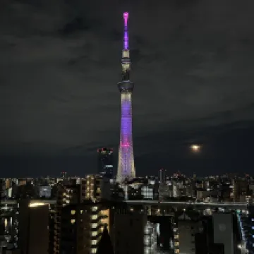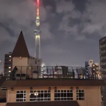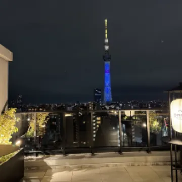 Le bar libre-service ouvert 24h/24 au dernier étage propose une variété de repas légers et de boissons. L'emplacement donne sur la vue panoramique sur le Skytree et le temple Sensoji. Il se trouve à seulement 5 minutes de la station de métro. -visites guidées à Tokyo.