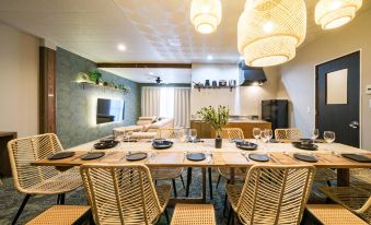 The natural wood-inspired interior creates a warm, relaxing atmosphere where you can feel surrounded by greenery while staying right in the city — perfect for groups and family trips.