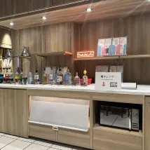 De 19h à 21h, un bar gratuit est disponible au rez-de-chaussée. Il y a aussi un fumoir à proximité (normal, à l'air libre). Le personnel est réactif. Nous avons envoyé nos valises par Cat à Kyoto ; ils nous ont aidés à tout remplir correctement.
