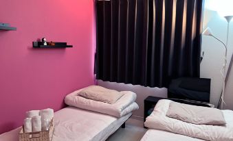 Check-in reporté, lit avec lattes qui n'arrêtent pas de tomber, chambre bruyante avec murs très fins. L'hôtel est situé à 1h en transports des attractions principales mais assez accessible. Il y a une petite cuisine et une machine pour le linge.