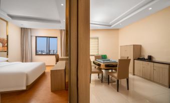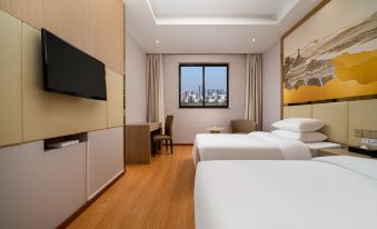The hotel's interior is modern and elegant, with a spacious and bright lobby; The room is comfortable and clean, soft colors, with a variety of room types, the room is equipped with soft bed, complete living facilities, brand bathroom series, to create a comfortable sleeping space.