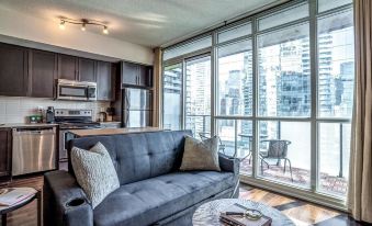 Welcome to your serene urban sanctuary in downtown Toronto! Enjoy the charm of the neighbourhood, sleep in hotel-quality linens, and take advantage of a delightful patio retreat. Whether you're visiting for work or fun, our dedicated workspace and selfie mirror are ready for you. Ideally located next to Union Station and just minutes from Scotiabank Arena—perfect for concerts and Raptors or Leafs games. With world-class restaurants and shops all around, book now for a stay that offers both comfort and prime access to the best of the city!About pets:No pets allowed.About children:Children allowed: ages 0-17.About smoking:Smoking is not permitted.About events:No events allowed.