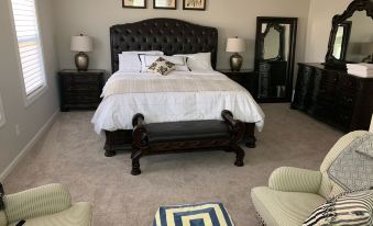 Centrally located, BRAND NEW CONSTRUCTION with spacious MASTER BED ROOM with KING BED, sitting area, large TV, work station area, large bath with shower cabin and bench, walk in closet.
