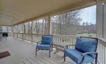 Spend your vacation at this well-appointed property in Hayesville and enjoy endless views, cows grazing and turkeys trotting just across the creek, trout fishing, hiking, tubing, and the opportunity to do as much or as little as you'd like.