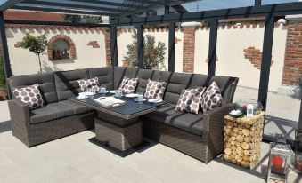 Around the house there is a seating area with barbecue facilities and for children space to play on the lawns.