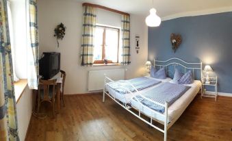 The holiday home belongs to the Chiemsee Apartments and is located about 1.2 km from the Ferienhof (address: Luft 19, 83236 Übersee). It offers other free offers such as: For example, a heated swimming pool with a mobile hall, a children's playground with a trampoline, swings, seesaw, slide, playhouse, football goal and 2 ponies named "Cindy & Cora".