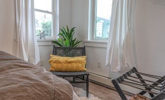 Escape to a beautifully designed one-bedroom cabin-style home in a quiet suburban neighborhood, professionally designed by Brooklyn designer Mackenzie (@mackofalltrades). Enjoy the convenience of modern technology and the comfort of a stylish interior, with a backyard perfect for your lifestyle flow.