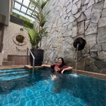 Une expérience incroyable à tous points de vue. Nous n'avions pas du tout apprécié Ipoh avant notre arrivée. L'accueil a été chaleureux pour l'anniversaire de ma petite amie. Les installations sont excellentes. On se croirait parfois dans la jungle, avec des singes à admirer et de magnifiques oiseaux. Le complexe est suffisamment grand pour ne jamais se sentir bondé, et la nourriture était parfaite ! La villa était confortable et nettoyée deux fois par jour, tandis que le jacuzzi et la petite piscine sont un vrai plus.