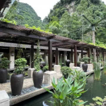 L'hôtel est à la hauteur de sa description : une oasis loin de la ville. J'ai adoré son emplacement, loin de l'agitation du centre-ville, au cœur d'une nature magnifique. L'hôtel proposait plusieurs équipements uniques, comme le bassin à poissons, la grotte de méditation et la grotte de cristal, qui étaient un véritable enchantement. Nous avons réservé une villa au bord du lac, avec son propre jacuzzi et sa piscine privée, ainsi qu'un joli balcon offrant une vue panoramique sur le lac. L'ensemble du personnel était très sympathique et nous a offert un excellent service. Nous avons également apprécié le dîner au Jeff's Cellar, une expérience époustouflante avec un délicieux menu de 10 plats dans une magnifique grotte calcaire vieille de 260 millions d'années.