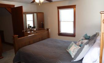 Guests will have access to the entire house, but there are a few locked storage areas. Outbuildings are not for guest use, and the property consists of the surrounding yard plus the picnic area. We have plenty of parking space available, and guests will enter via a lock pad at the front door.