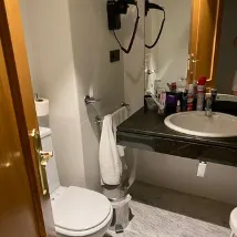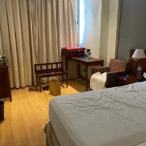 El edificio está ubicado entre el centro y las estaciones del tren y de autobuses. El edificio tiene seis plantas con muchas habitaciones. El personal de recepción es amable y eficaz. Tiene al menos dos ascensores, pero para ir a la tercera se deben usar los dos que, por cierto, no están juntos. Un absurdo poco práctico. Los pasillos tienen iluminación poco uniforme y la identificación de las habitaciones estaba bien. La habitación para uso individual tenía unos 14 m2 o sea era pequeña y tenía una distribución poco práctica. De hecho, la puerta de entrada casi daba en la cama. La cama de 1.50m era cómoda y las almohadas eran correctas. La insonorización no era muy buena, se oía el ruido del exterior y del pasillo. Ade3, había un chirrido intermitente de algún sistema ventilación o refrigeración del otro lado del baño. La iluminación era correcta y se podía dejar completamente a oscuras. El mobiliario estaba en buen estado. Menos el minibas que tenía descolgada la puerta La TV era de unas 40", y se veía muy bien. Había muchos canales locales y nacionales de la TDT española. El aire acondicionado se podía regular de manera algo pedestre. El baño no era amplio y cómoda de usar. La iluminación del baño era correcta. La grifería de la bañera era incómodo además se regulaba malamente la temperatura del agua. Las toallas estaban bien. El desayuno no era muy correcto para esta categoría, además de la falta de mesas y personal para recogerlas y reponer comida. La Wifi funcionaba bien . En resumen, una opción regular en el centro de la ciudad, con algunos problemas.