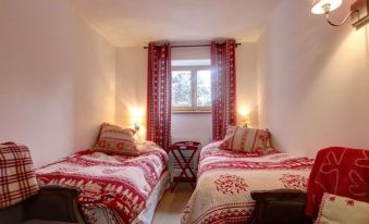 3 chambres : 3 lits simples et 1 lit double