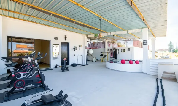 Ne vous fiez pas à l’accès ni à la rue où se trouve l’UFitness Hotel. Cette maison d’hôtes, à l’abri des regards, bénéficie pourtant d’un emplacement central : à seulement 5 minutes de la gare de Vila Real de Santo António, à 5 minutes de la plage de Monte Gordo et à 20 minutes de Tavira. Elle offre un large éventail de possibilités tout en restant légèrement en retrait de l’agitation. Vous serez accueillis avec chaleur et simplicité par Owen, votre hôte, qui vous invitera à entrer et à découvrir par vous-même ce que l’extérieur ne laisse pas deviner : de l’espace, une ambiance un peu atypique, un étage détente, une terrasse, une piscine, un espace sportif et des chambres agréables. Lors de notre escale à Vila Real, dans le cadre d’un road trip dans le sud du Portugal, nous n’avons passé qu’une seule nuit — plutôt chaude — et n’avons donc pas pu profiter pleinement de tous les services proposés. Mais nous avons eu le plaisir d’échanger avec Owen, installé au Portugal depuis plusieurs années, autour d’un petit-déjeuner à la hauteur de nos attentes. Je recommande vivement ce lieu aux personnes en quête de calme et de simplicité, et qui savent apprécier le savoir-vivre. À l’image du sud du Portugal que l’on aime, loin des grandes villes : humble, modeste, mais non dénué de charme.