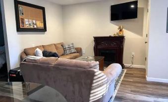 There is plenty of room to enjoy a meal at the dining table or relax on the plush sofa and loveseat and watch a movie on the TV. The kitchenette includes a fridge, air fryer, electric cooktop, pots and pans, Keurig coffee maker, dishes, and utensils. We also provide you with Keurig coffee pods, an assortment of teas, sugar, salt and pepper and oil to cook.