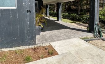 Nestled into the serene bushland, this hidden gem of a holiday apartment offers a unique retreat. Tucked away down a flight of stairs under an earth roof, the apartment blends seamlessly with its natural surroundings.