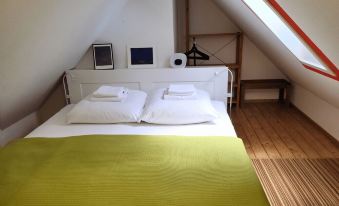 The 45 m² attic apartment in a listed half-timbered house offers the perfect space for up to four guests with its beautiful view of the Georgenkirche church and its proximity to the harbor (230 m).