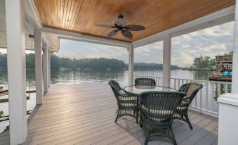 Lakin’ It Easy: Low traffic, open cove, just off the main lake. The views from the house and the dock are amazing. It's hard to figure out where to stop to relax from the lower deck porch swing to start with coffee, the upper deck for lunch, afternoon sunning on the second level of the dock, and dinner on the lower dock. Enjoy swimming, boating, fishing or just relaxing in the perfect location. Being renters in the past, we know what amenities make the place memorable. In this house, there is a large living room for gatherings, a dining room and bar area together that seat 20, and a large, modern kitchen to manage every meal. There are two large refrigerators, both with ice makers, two microwaves, and a fully equipped laundry room. The dock also includes a small refrigerator and a kitchenette for drinks and snacks throughout the day. The two-story dock includes a very large sundeck and all composite decking. We also provide the features we most appreciated as renters which include a covered boat lift for a ski boat (up to 8,000 lbs), jet ski lifts, and side docking for a pontoon boat. We have extra lifejackets and a Rubber Dockey for water fun. There are four Roku equipped TV's set for your streaming needs, including a 75" TV in the game room.