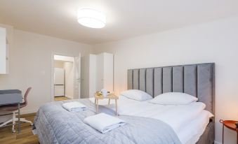 Vous vous sentirez comme chez vous dans cet appartement qui offre une cuisine dotée d'un grand réfrigérateur/congélateur et d'un four. La télévision à écran plat de 50 pouces avec des chaînes par câble est l'assurance de soirées divertissantes, tandis que pour surfer des heures sur les réseaux sociaux, vous profiterez de l'accès Wi-Fi à Internet gratuit. Pour votre confort, vous trouverez sur place un bureau et une bouilloire électrique et profiterez d'un service de nettoyage tous les jours.