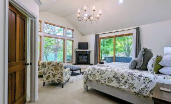 Step outside and explore the charm of Harmony Estate’s lush property. Behind the historic barn, you’ll find a chicken coop and peaceful forested green space, perfect for a stroll or quiet reflection. The expansive grounds invite gathering, exploring, and making memories that will last a lifetime.