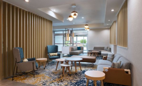 On the advice of a wedding planner, we reserved a block of rooms at the Woodland Suites. She did not know, and we were not informed that the hotel is undergoing a major renovation, outside and in, in preparation for changing to a Marriott. We used Discover to make the reservations and to check in, only to find out later that they no longer take Discover. The actual rooms we had, the few not being gutted, were comfortable and clean, though not spotless. We were told that the event room was unavailable due to remodeling. Otherwise, nothing said about amenities or the overall condition of the hotel. No sign on the outside identifying the hotel. Stacks of construction material and old mattresses just off the parking lot. Scaffolding and stripping on both sides. Construction material blocked one emergency exit. Lobby is gutted and being renovated. No lobby restroom No breakfast of any kind. Pool was not usable. Major work going on just behind the building. Housekeeping is once a week (not informed of this in advance). No channel guide. No door hanger. One room had a plastic bag with a head shot of a woman covering the smoke detector. No shower mat in a very slippery shower. I take the steps whenever I can, the second morning there was a pile of human poop in the stairwell. When I told the front desk the reaction was "That's gross". Water had a rank taste, to the point of us being advised not to drink the water and being given bottled water. Barbeque grills were filthy. Not what we expected for a wedding party, or for staying overnight. On the third day we were given the option of checking out without penalty. Staff overall seemed indifferent to the guests. Remodeling work begins at 8:00 a.m. Inside and out. Note: two of the hotels nearby are also being renovated. This property should be closed during what is a total remodel.