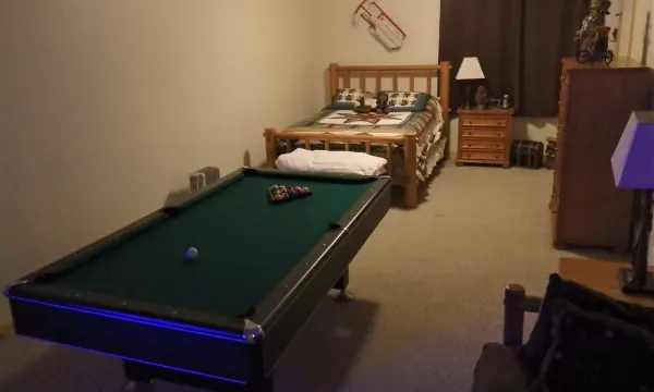 Quality beds from Simmons Beauty Rest and cozy furniture throughout the house are provided for your comfort. Feather duvets are provided for each bed as well as a choice of medium or firm pillows. The master bedroom suite bath has a Jacuzzi tub and separate shower. The French doors open to the loft for a spectacular morning view of the mountain right from your king size bed. Downstairs has a fourth bedroom, which can be utilized for the privacy of a couple, or a family room for the kids, complete with its own bathroom, TV, and pool table. A supply of games, books and puzzles for every age are provided.