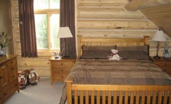 We’ve built a dream log home, hand crafted inside and out of huge lodge pole pine logs. Inside we have made comfort and beauty our prerogative. After a great day of skiing, curl up with a book in front of the fire and enjoy the panoramic mountain view of the sunset, sky and ski slopes through the vast windows from the great room and master loft suite. Relax in the hot tub under the stars and sometimes catch the moon rise. At night, enjoy the view of the resort’s night skiing, a favorite with locals and visitors alike. The basement has a mudroom equipped with a washer and drier and a boot drier to make sure everything is ready for the next days run. There is a two car garage for parking and stowing your gear.