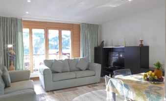 Petite résidence accueillante pour les enfants "Bella Vista", année de construction 2006. À 200 m du centre de Wengen, sur un versant, excellente situation: centrale mais tranquille. En commun: jardin entretenu (clôturé). Espace de jeux pour les enfants (toboggan, balançoire). Infrastructures de la Maison: ascenseur, chauffage central. Sur demande possibilité d'achat avant l'arrivée. Magasins, supermarché 200 m, restaurant 50 m, bar, boulangerie 200 m, centre à 3 minutes à pieds, arrêt de bus "Lauterbrunnen (by train)" 3.2 km, gare ferroviaire "Wengen" 200 m, piscine 600 m. Téléphérique, remontées mécaniques 250 m. Les lacs connus sont facilement accessibles: Thunersee 13 km, Brienzersee 13 km. Veuillez noter: complexe de vacances sans voiture. L'arrivée se fait par téléphérique/télécabine. D’autres appartements sont également proposés à la location dans cette maison de vacances. Arrivée est uniquement possible par train de Lauterbrunnen – 14 minutes temps de transport.