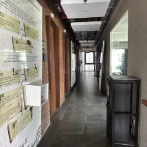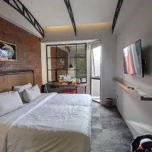 The decoration of the alley in the building is unique and the room though a bit small but cozy and quite bright.