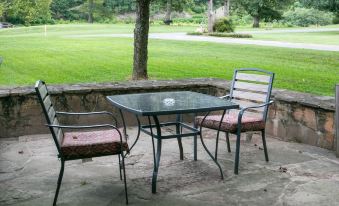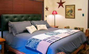 This Cowboy themed suite has a nice living room / bed room combination and is trimmed in wild cherry cut here at the ranch. It also has a cute breakfast / kitchen combo. The bath (with 2 person Jacuzzi) & gas log fireplace are also trimmed in cherry. The Cowboy and Homestead are adjoining suites. Great views from the bedroom and rock patio. 700 sq ft | Sleeps 2About pets:No pets allowed.About checkOut:Check out before 10:00 AM.About children:Adults only.About checkIn:Check in after 2:00 PM.About smoking:Smoking allowed: in designated areas.About minBookingAge:Minimum age to rent: 18.About events:No events allowed.