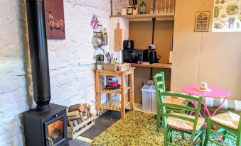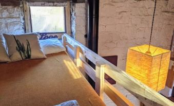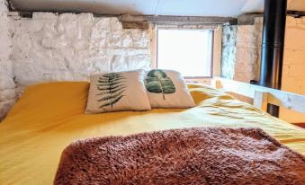 A quirky mezzanine platform has a nice view of the fields and sheep and you'll sleep well on a platform bed with super comfy king size mattress. Below is small double futon bed which can act as a sofa also. Plenty of blankets are provided also. We recommend that you bring warm clothing and slippers. Bothies are traditionally stone or wooden buildings located in the mountains to provide a shelter. Although this is a Fell side bothy it is still built the traditional way out of stone. You do have to pop out briefly to access the toilet, shower and Sauna room. It's a great place if you enjoy camping/glamping!! Fitted also with TV, WiFi and a very simple kitchen.