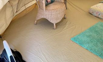 First of all, we were told that we would stay in the larger tent but when we came back to actually get our things out of our cars we were told we had been moved to the smaller tent. The tents had mildew spots on them and did not smell very good. They do not offer WiFi as it states in the amenities listing and the bathroom facilities are a port a john and an outside shower with limited hot water. We felt like it was not as represented.