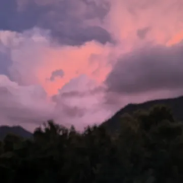 Environnement : L'air est vraiment bon. On dirait un nouveau poumon. Le coucher de soleil nuageux est si beau.