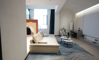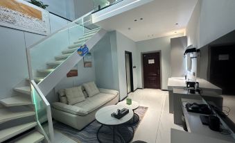 是上下兩層的複式的,樓下的投屏簡直太棒了!!!衞生也弄的超級超級好,還有歡迎飯小零食,客服姐姐的人也很好,本來行李很多還擔心收拾不完。地方也很好,樓下有很多吃的,對面還有電影院什麼的,設施很全。推薦推薦推薦!衞生真的超級好呀!在酒店沒有拍照片,訂酒店的時候的首頁照片所見即所得,真的很好)