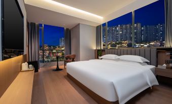 Jinhao Hotel, a shining pearl on the Xuanen River, is located in the core area of the riverside square in Xuanen County. Jinhao Hotel boasts the essence of the night view of Wenlan Bridge and Gongshui River by virtue of its excellent geographical location. The splendid riverside scenery can be seen by pushing the window. The hotel has ingeniously created an intelligent guest control system, with voice control of lighting, curtains, and air conditioning, perfectly integrating technology and comfort. The rooms are equipped with panoramic french window, which can take a panoramic view of the swaying lights of Gongxiu cruise ship and the city skyline; Specially designed warm parent-child room, cartoon themed decoration and children's entertainment space make family travel enjoyable and harmonious. Equipped with a high-end sauna room, enjoy hot steaming and relaxation after bathing, and relieve travel fatigue. As night falls, take a stroll along the riverside square, admire the neon reflection of Wenlan Bridge, take a night cruise on Gongxiu Boat to enjoy Gongshui, and return to the intelligent luxury of Jinhao to indulge in a dream. This is not only a business and travel hub, but also an ideal choice for family vacations and romantic residences.