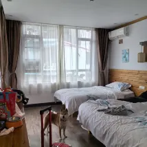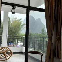 Il y a un balcon dans la chambre, vous pouvez voir la vue sur la montagne et vous vous sentez très proche de la nature. Le magasin a soigneusement préparé du liquide anti-moustique électrique dans la pièce pour éviter les perturbations des moustiques. Le bémol c'est qu'il y a eu quelques fuites sur le balcon de la chambre. Il a beaucoup plu la nuit où j'y suis allé. Quand je me suis réveillé le matin, il y avait plusieurs fuites sur le balcon. Le commerçant peut le réparer. De plus, il y avait le bruit des battages de pieux à proximité lorsque je dormais, qui a été entendu toute la nuit. Cela n'a pas eu beaucoup d'impact si j'apportais moi-même des bouchons d'oreilles, mais ma mère était dérangée sans eux.