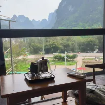 Le patron a eu la gentillesse de venir au magasin et de me surclasser dans une chambre double. La vue était incomparable. Pour 20 yuans, je pouvais voir la magnifique rivière Li depuis le balcon. L'environnement de la chambre est propre et bien rangé, et la femme de ménage vous accueillera chaleureusement lors de votre rencontre.