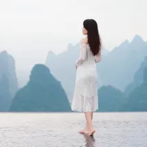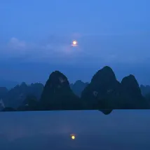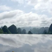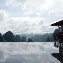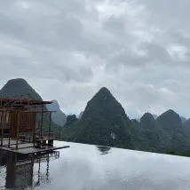 Environnement : Une attraction de célébrités sur Internet, la plus belle est de regarder le paysage montagneux vallonné du pays des fées du Guangxi depuis la piscine à débordement.